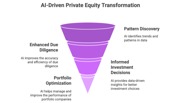 AI enhances informed investment decisions by efficiently identifying patterns in large volumes of complex data, enabling private equity firms to uncover hidden opportunities.