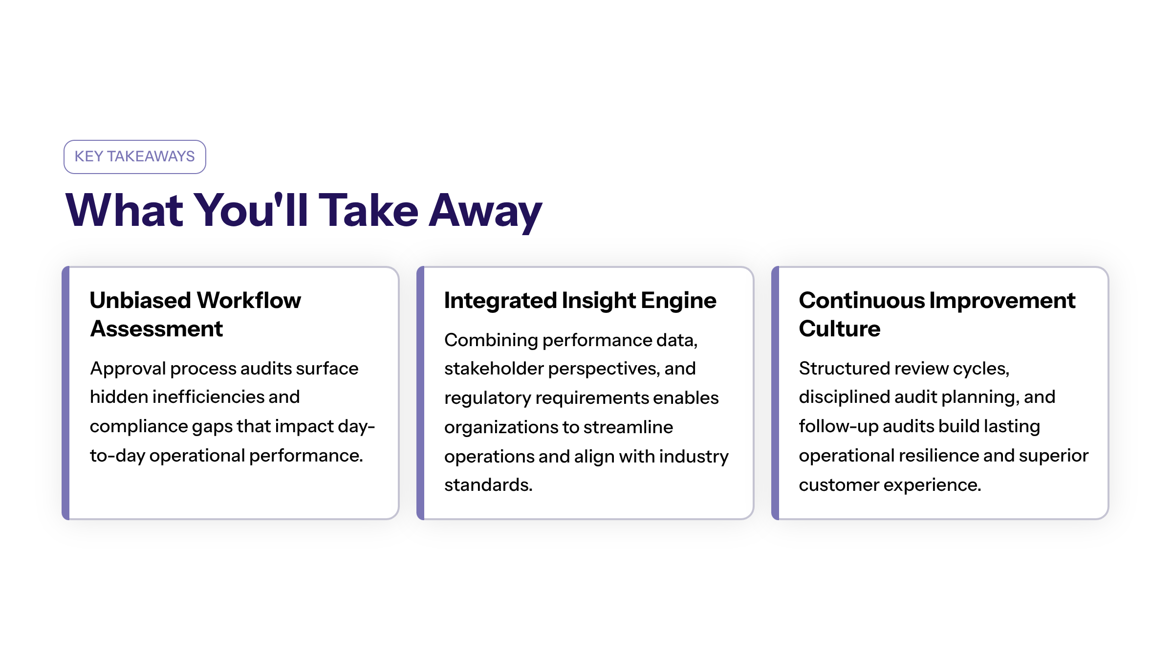 Approval process audits deliver an unbiased assessment of organizational workflows, uncovering hidden inefficiencies and compliance issues that impact operational performance.