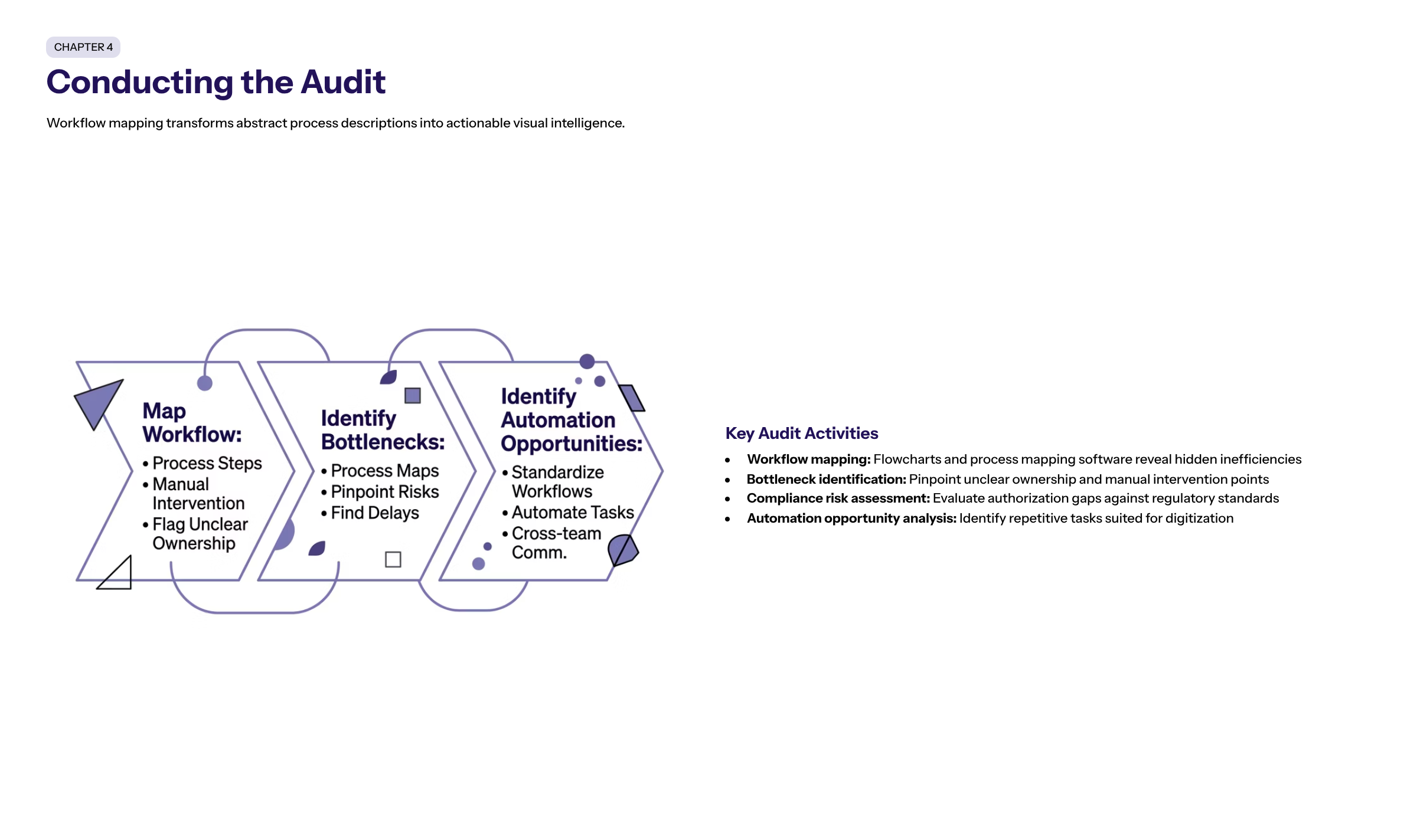 Regular audits help organizations stay aligned with changing processes and technology, ensuring continuous improvement. A thoughtful process audit evaluates the entire ecosystem, including technology integration, to uncover hidden inefficiencies. Automation and AI tools should be integrated into workflows to simplify processes and enhance audit effectiveness.