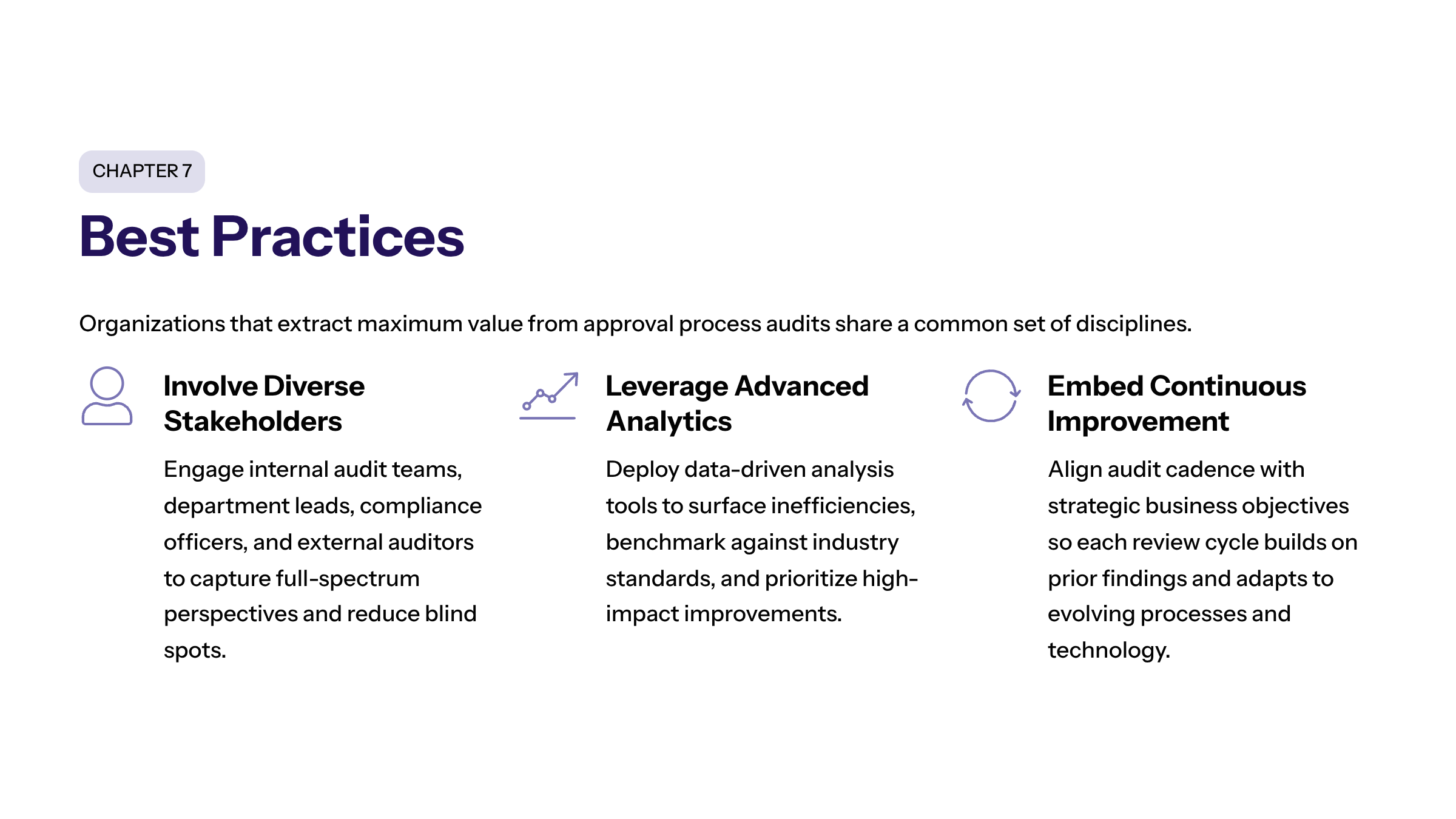 Adopting best practices such as involving diverse stakeholders, leveraging advanced analytics, and embedding continuous improvement cycles positions organizations to maximize the value of approval process audits. Aligning audit efforts with strategic business objectives ensures these reviews contribute meaningfully to operational excellence.