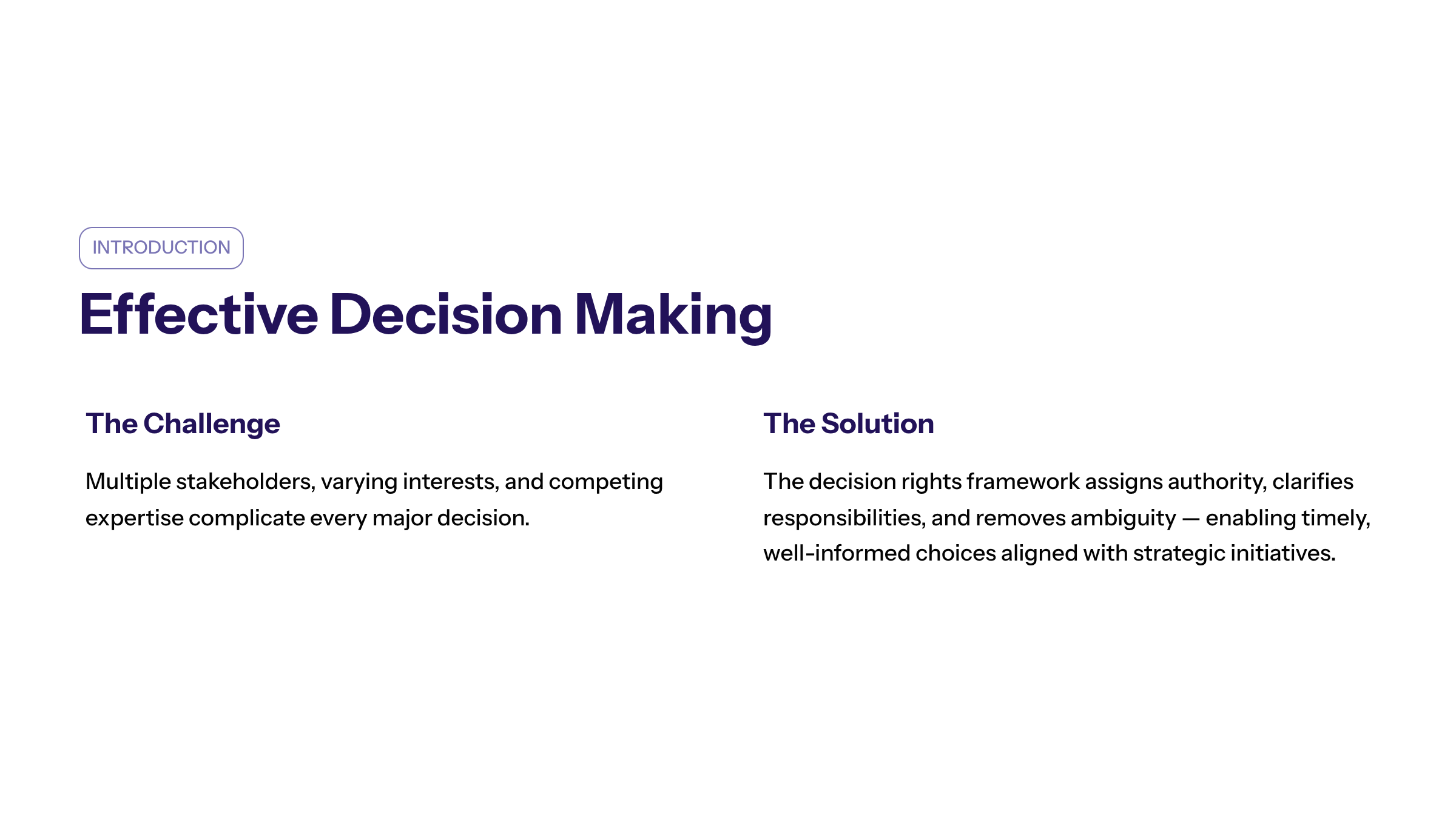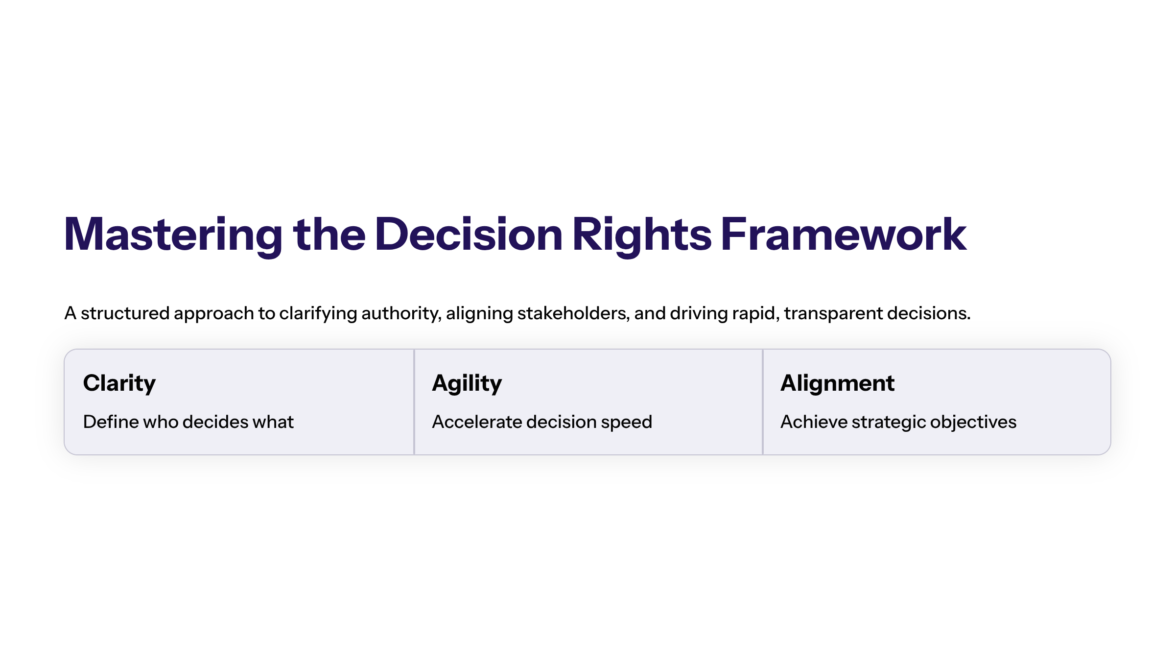 Clear decision rights are essential for improving decision quality, accelerating the decision process, and enabling better decisions across complex organizations.