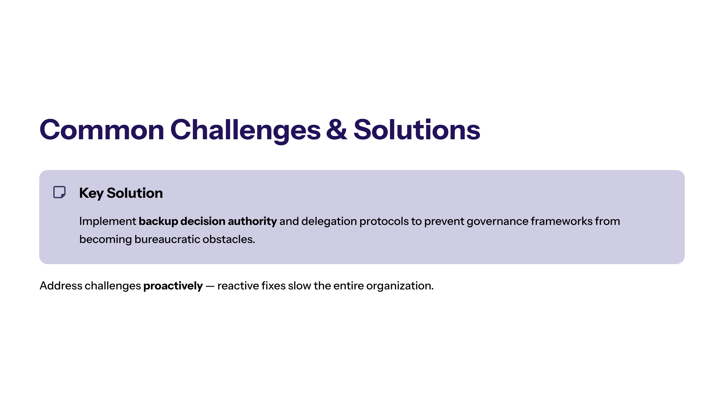Even well-designed decision SLAs encounter operational friction. Addressing these challenges proactively prevents governance frameworks from becoming bureaucratic obstacles rather than business accelerators.