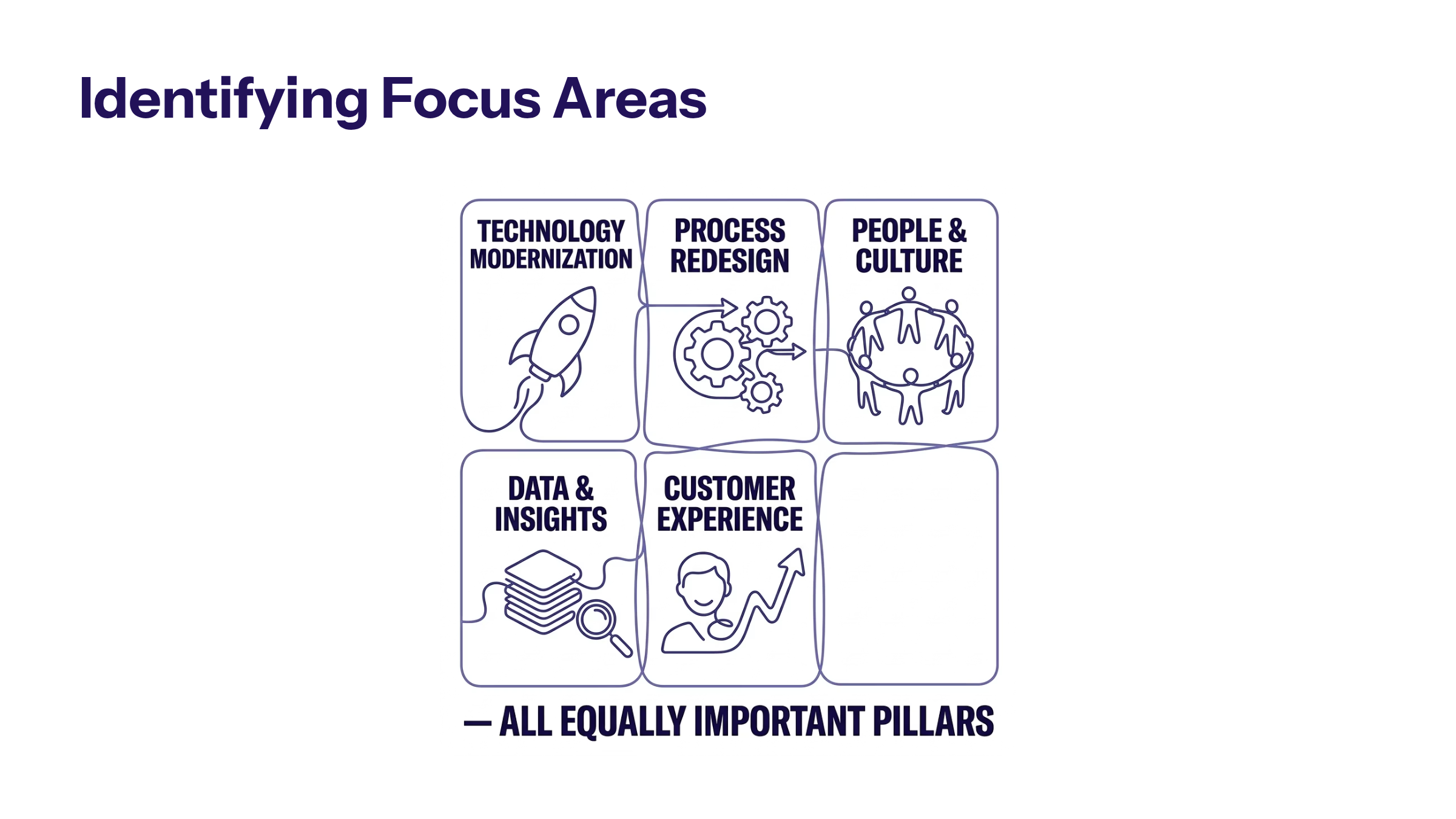 Selecting the right focus areas is essential to ensure that transformation efforts are moving in the right direction and address the most impactful aspects of the business.