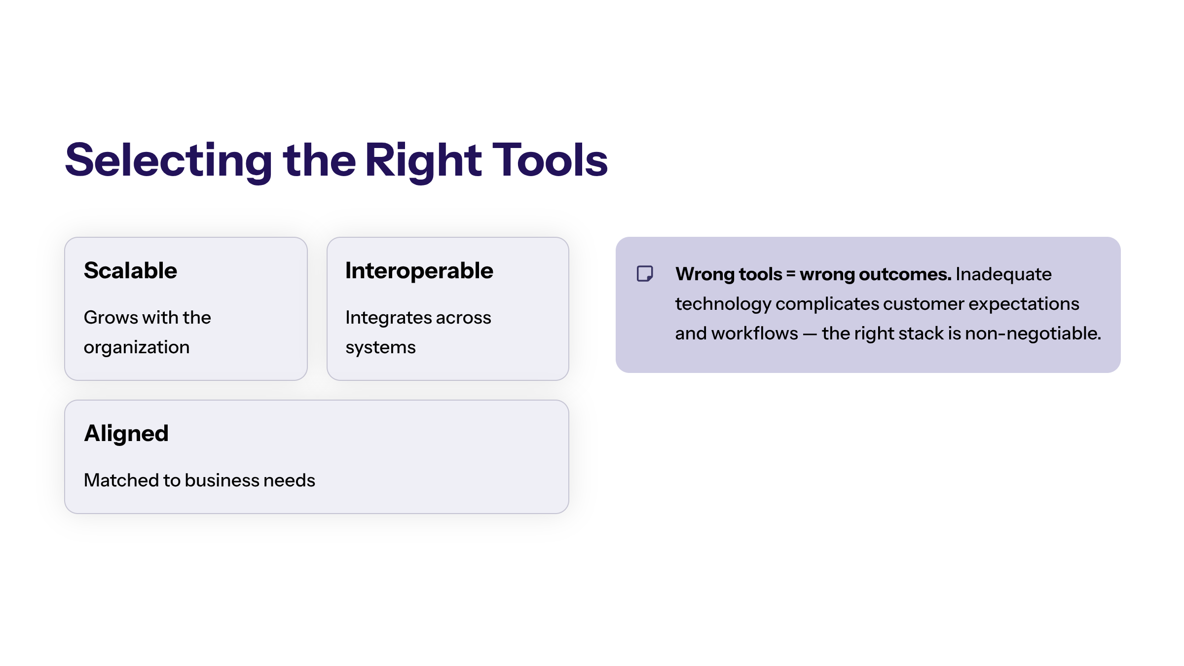 Using inadequate tools can complicate the management of customer expectations and workflows during digital transformation, underscoring the importance of selecting the right technology stack.