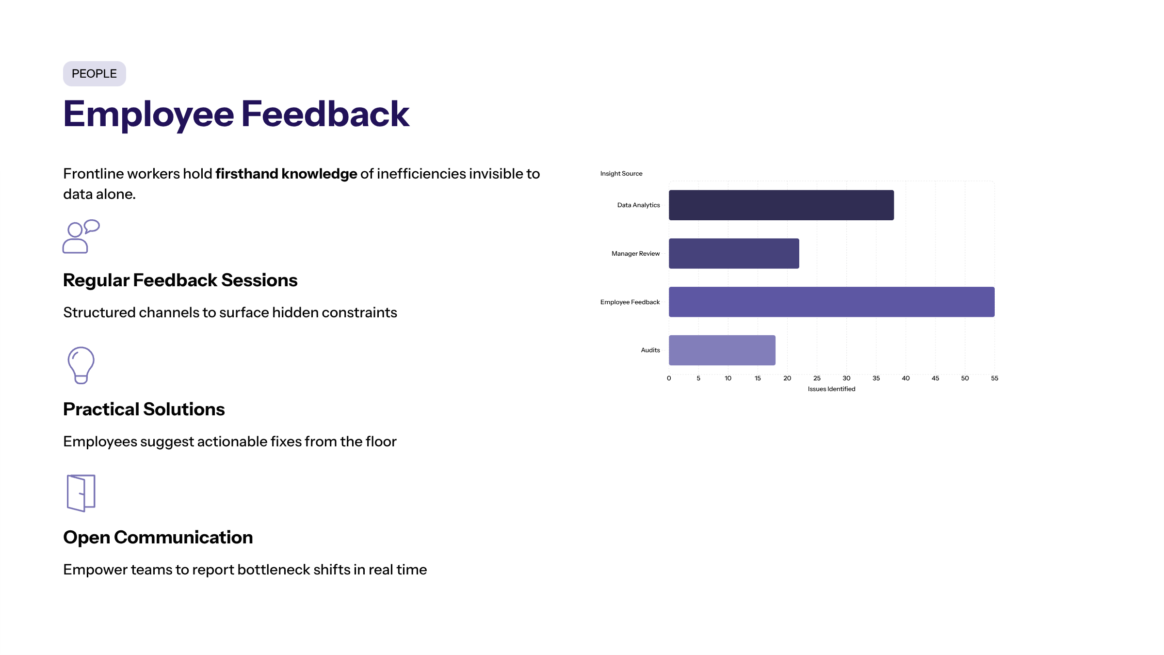 Employee Feedback | Collects insights from frontline workers | Detecting hidden or dynamic bottlenecks |