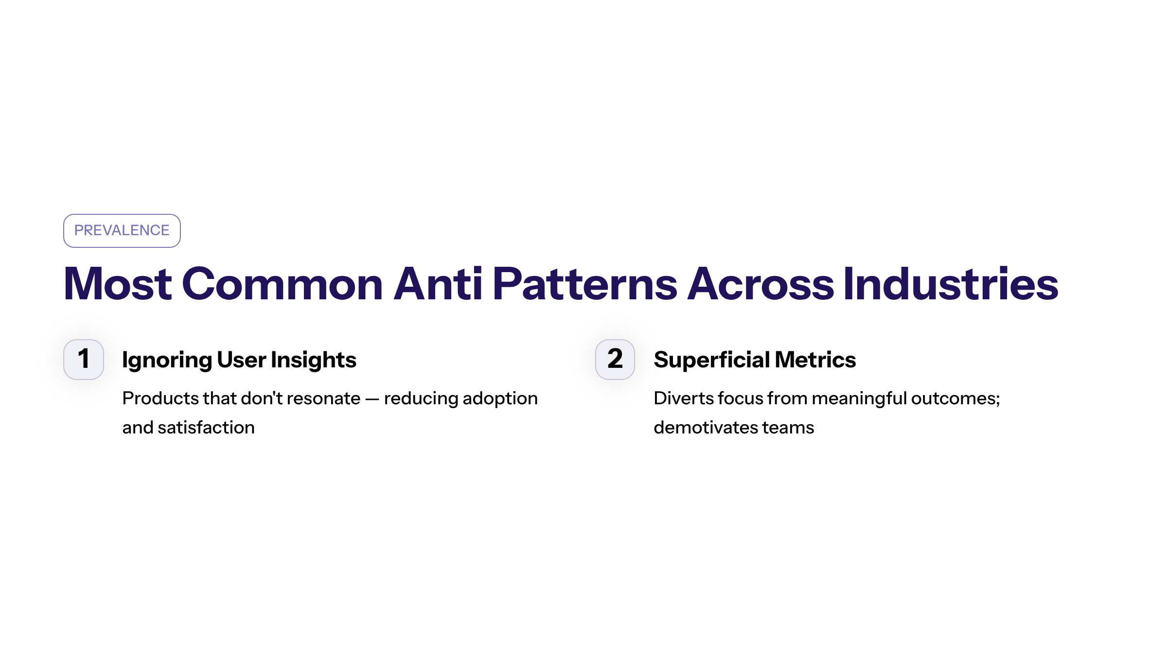 This section consolidates the most prevalent anti patterns observed across industries.