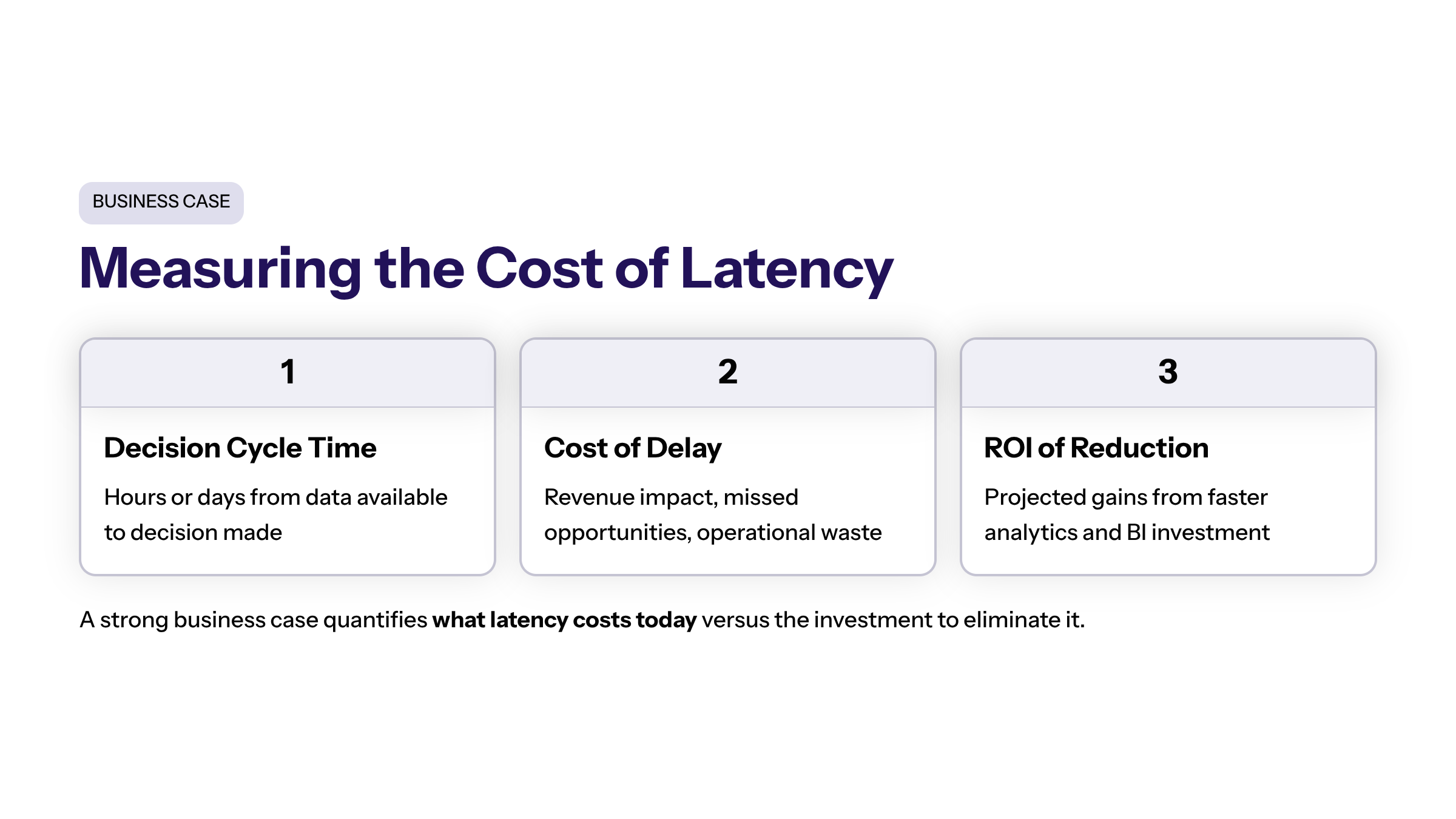 Justifying investments in data analytics and business intelligence requires a strong business case that demonstrates the cost of decision latency and the potential ROI of reducing it.