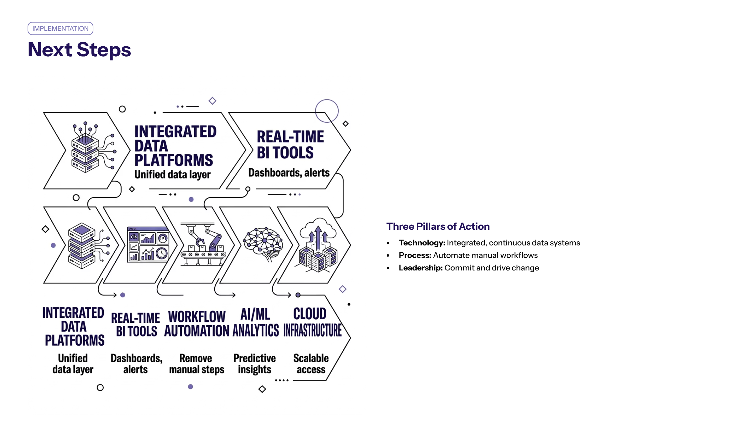 Organizations that cultivate a data driven culture are better positioned to implement next steps rapidly and adapt to evolving business demands.