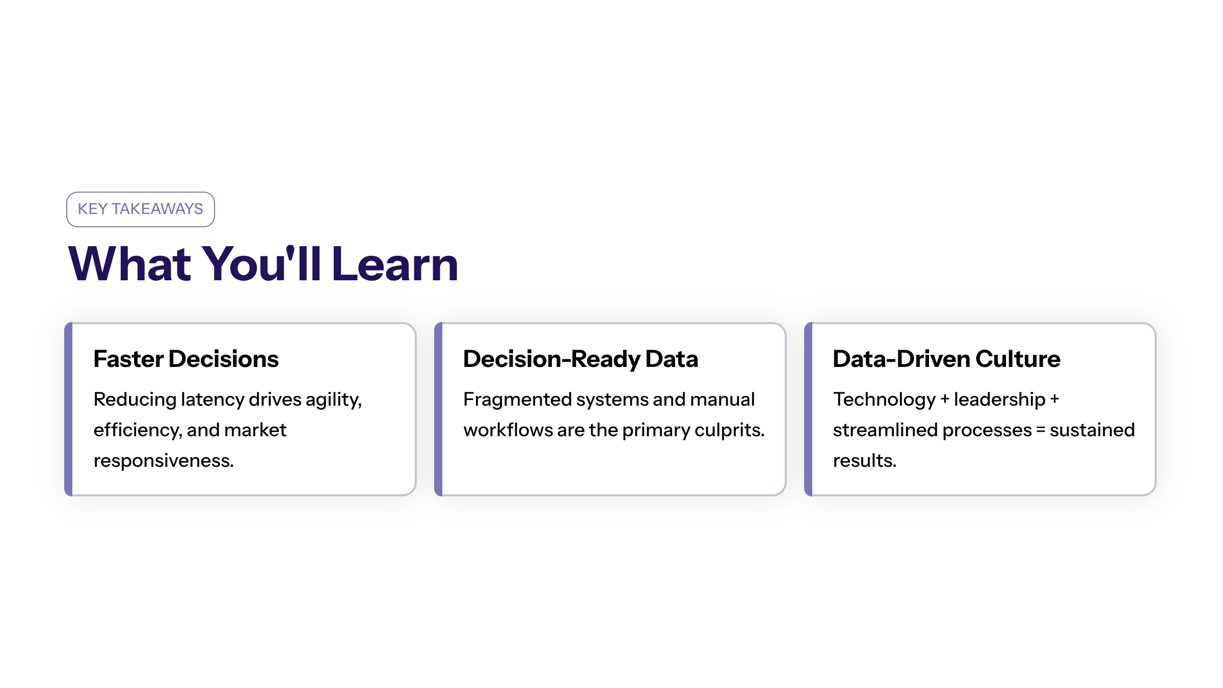 Trusted, reconciled, decision-ready data that flows continuously is key to shrinking decision latency and enabling faster, more confident decisions.