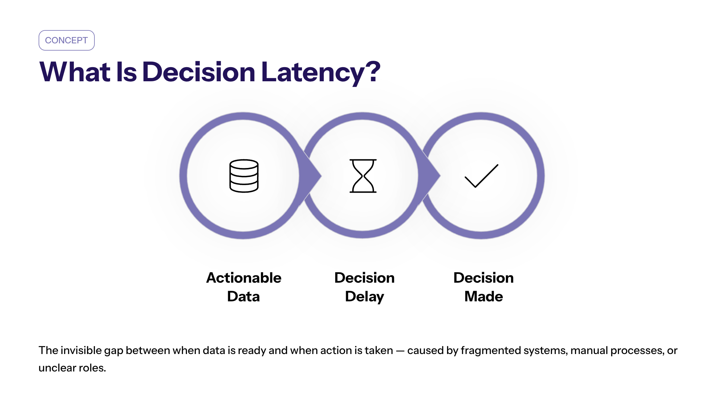 Decision latency, also called decision delay, is the invisible gap between when actionable data becomes available and when a decision is actually made. This delay can be caused by fragmented data systems, manual processes, or unclear roles in the decision making process.