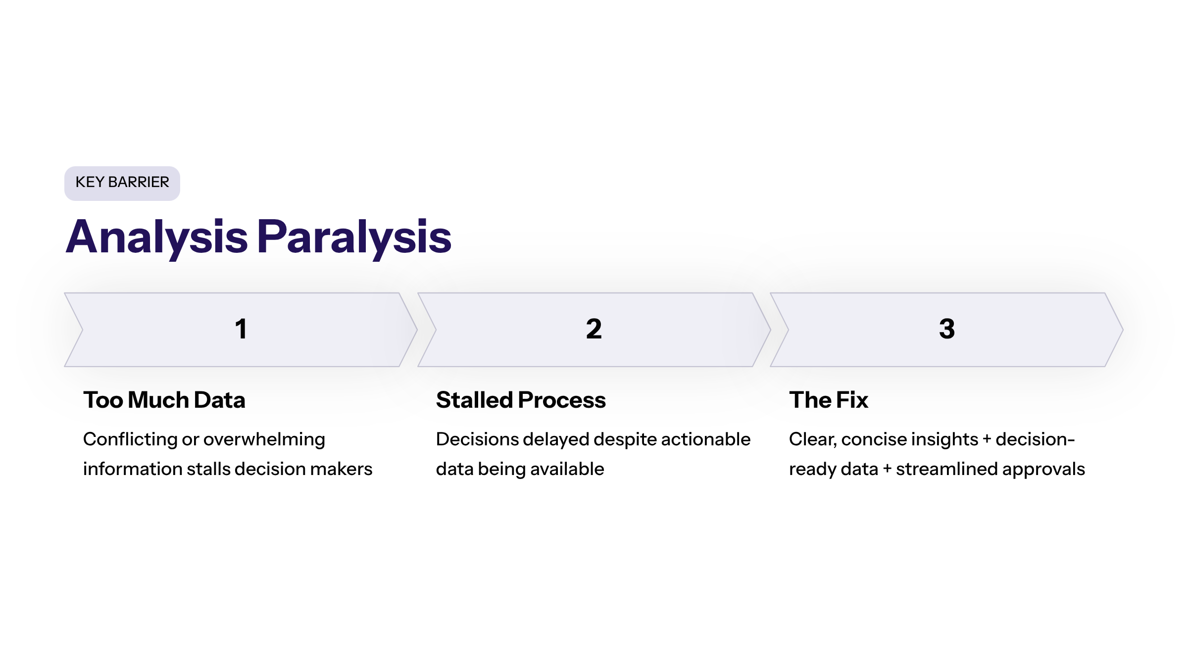 To overcome analysis paralysis, organizations must focus on delivering clear, concise, and relevant insights, supported by decision ready data and streamlined approval workflows.
