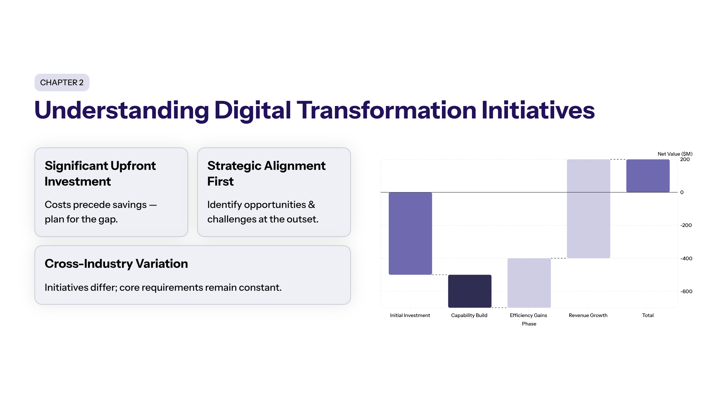 Digital transformation initiatives vary widely across industries and organizational contexts but share common characteristics: they require significant investment in digital capabilities, innovative technologies, and organizational change. At the outset of the transformation journey, it is essential to identify key opportunities and challenges to ensure strategic alignment and effective resource allocation. Digital transformation initiatives often require significant investment before realizing cost savings or productivity improvements.