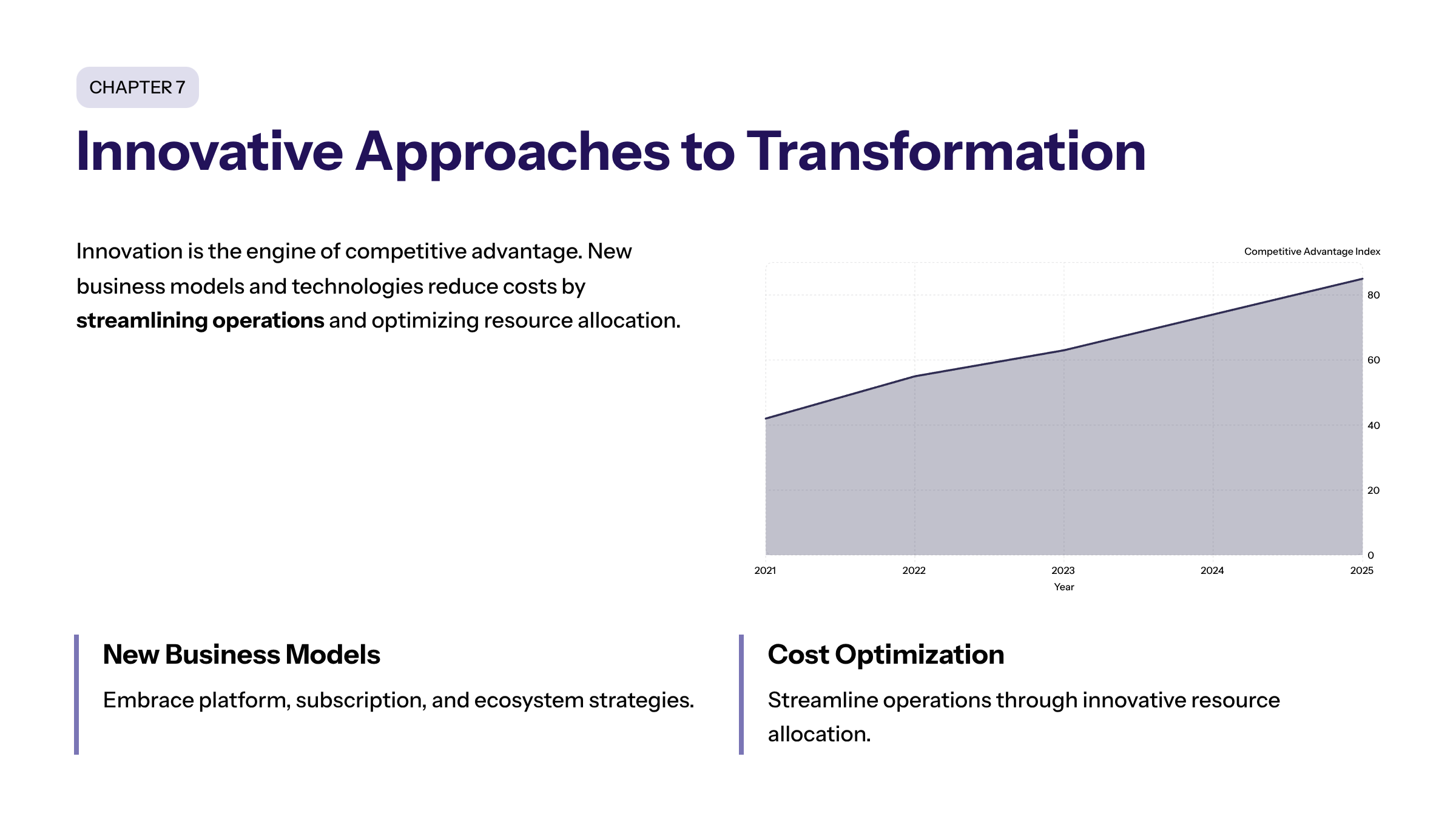 Innovation drives competitive advantage in digital transformation. Organizations must embrace new business models and technologies to stay ahead. Innovative approaches are essential for long term success, as they help organizations reduce costs by streamlining operations and optimizing resource allocation.