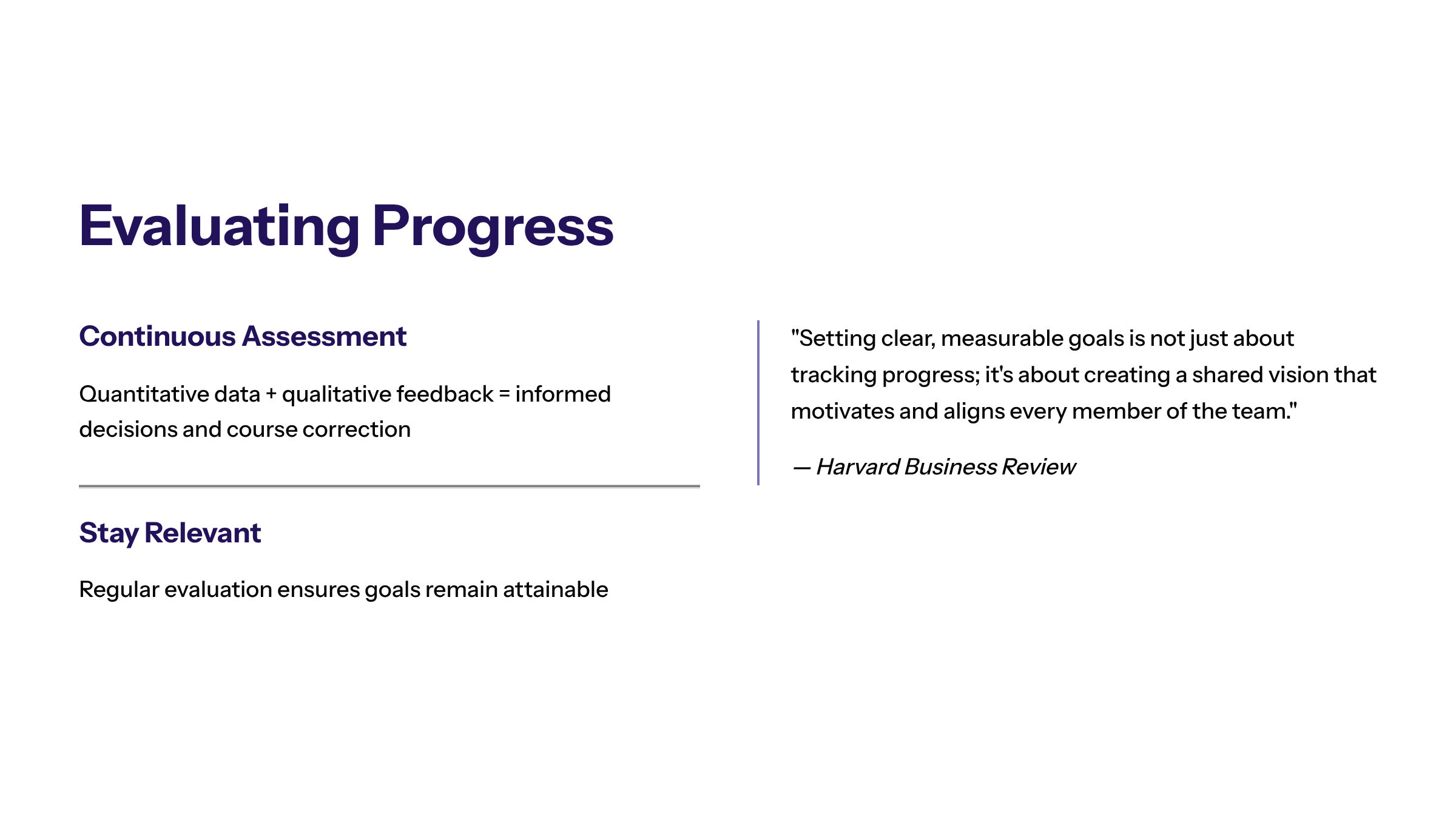 “Setting clear, measurable goals is not just about tracking progress; it’s about creating a shared vision that motivates and aligns every member of the team.” — Harvard Business Review