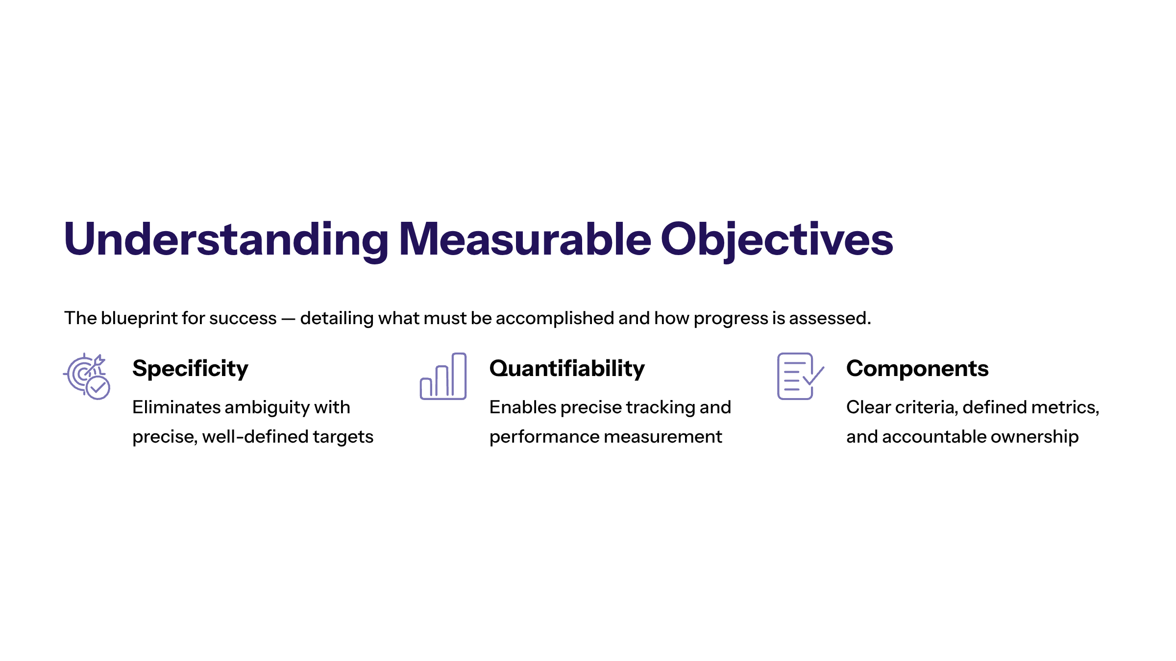 Measurable Criteria: Quantifiable indicators that track progress and outcomes.
