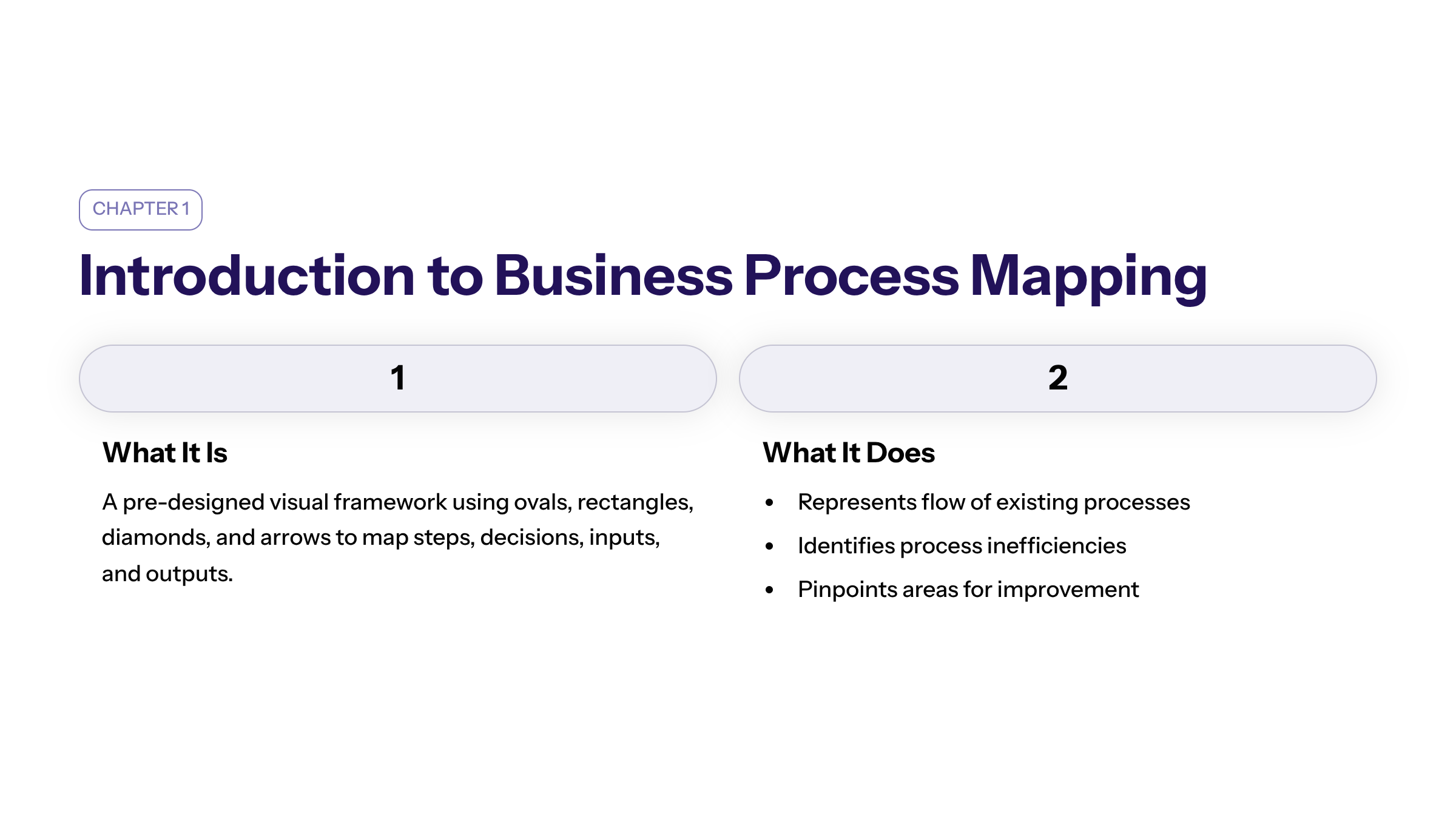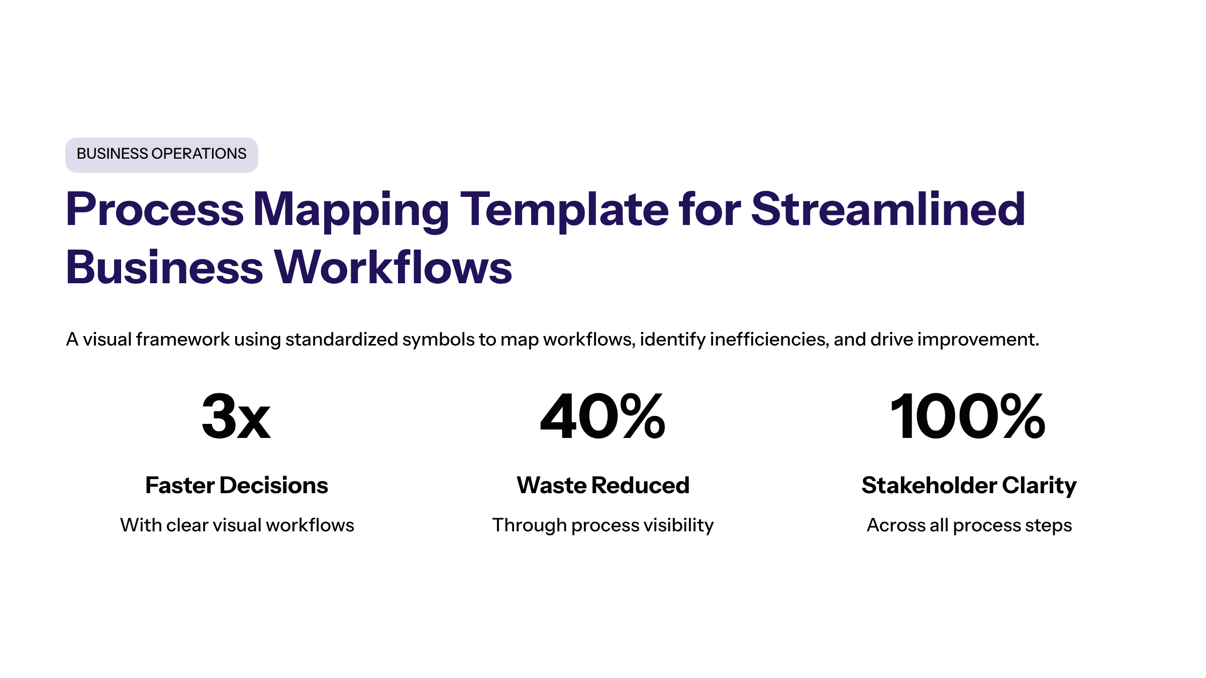Business process mapping is a powerful visual tool used to create a process map that represents the flow of a company's existing processes. At its core, a process mapping template is a pre-designed visual framework that uses standardized symbols and shapes—such as ovals, rectangles, diamonds, and arrows—to map out a workflow's steps, decisions, inputs, and outputs. By visually mapping workflows, organizations can gain insight into how a process works, identify process inefficiencies, and pinpoint areas to improve processes. Using a business process mapping template, teams can create detailed process maps that include all the details involved in a specific process, ensuring consistency and clarity throughout the project lifecycle.