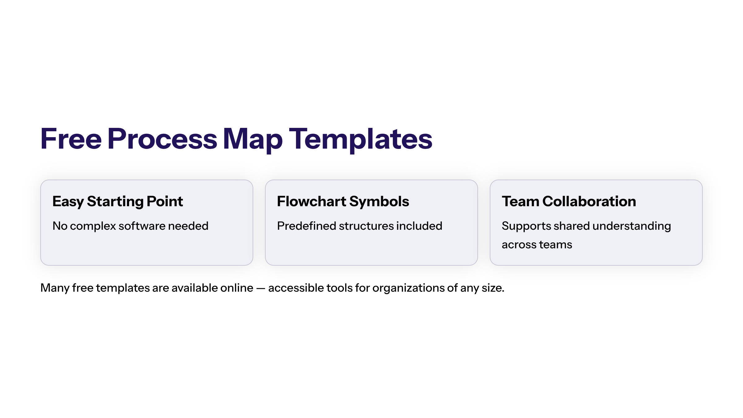 Many organizations benefit from using free process map templates available online. These templates provide an easy starting point for teams looking to visualize workflows without investing in complex software. Free process map templates often include flowchart symbols and predefined structures that help users create clear and effective process maps, supporting better understanding and collaboration across teams. They also allow project managers to maintain a high-level process overview while drilling down into all the details as needed.