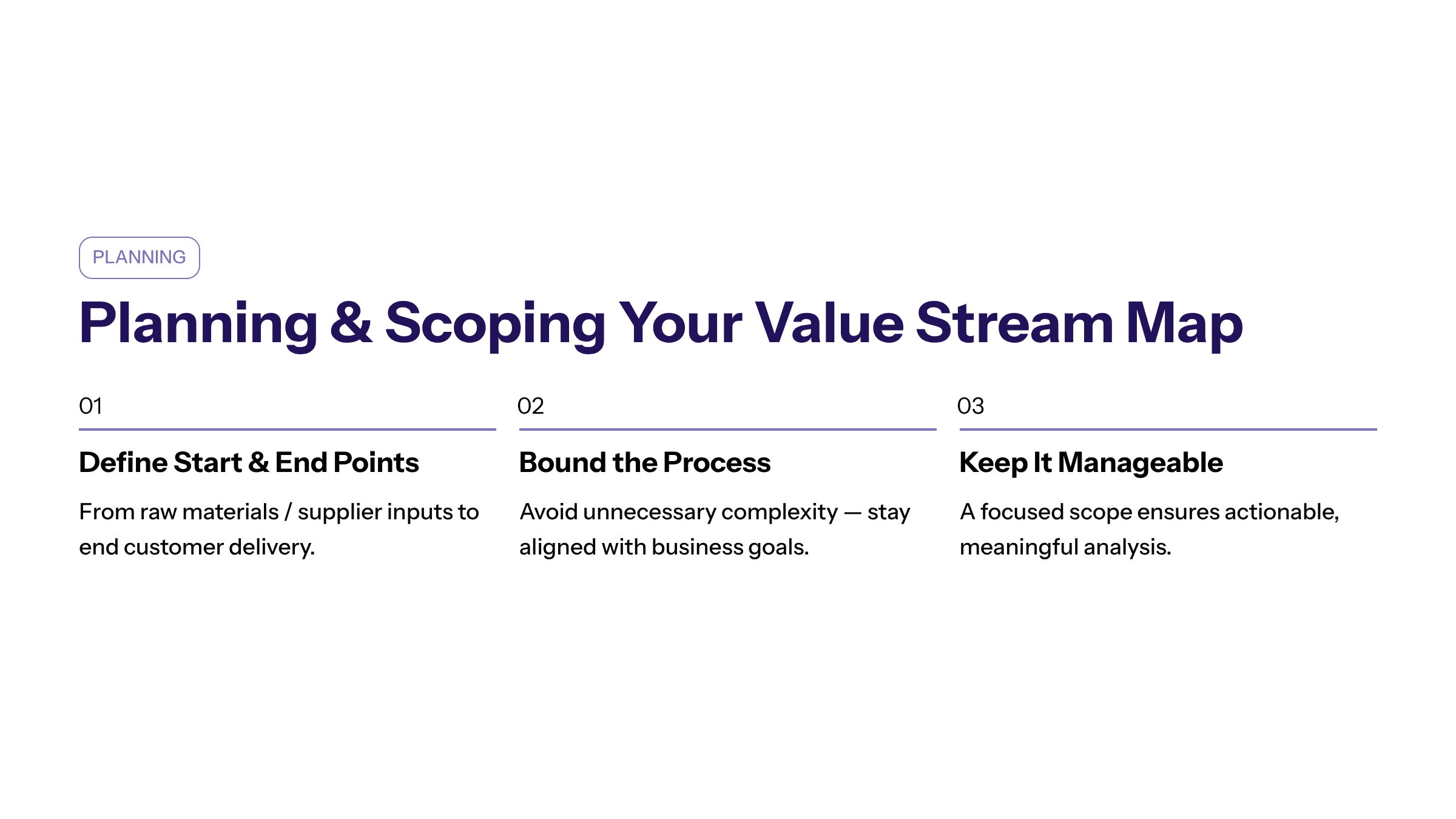 Determining the scope of your value stream map is essential for a focused and manageable analysis. Start by creating clear start and end points, often from raw materials or supplier inputs to the delivery to the end customer. Bounding the process avoids unnecessary complexity and keeps the effort aligned with business goals.