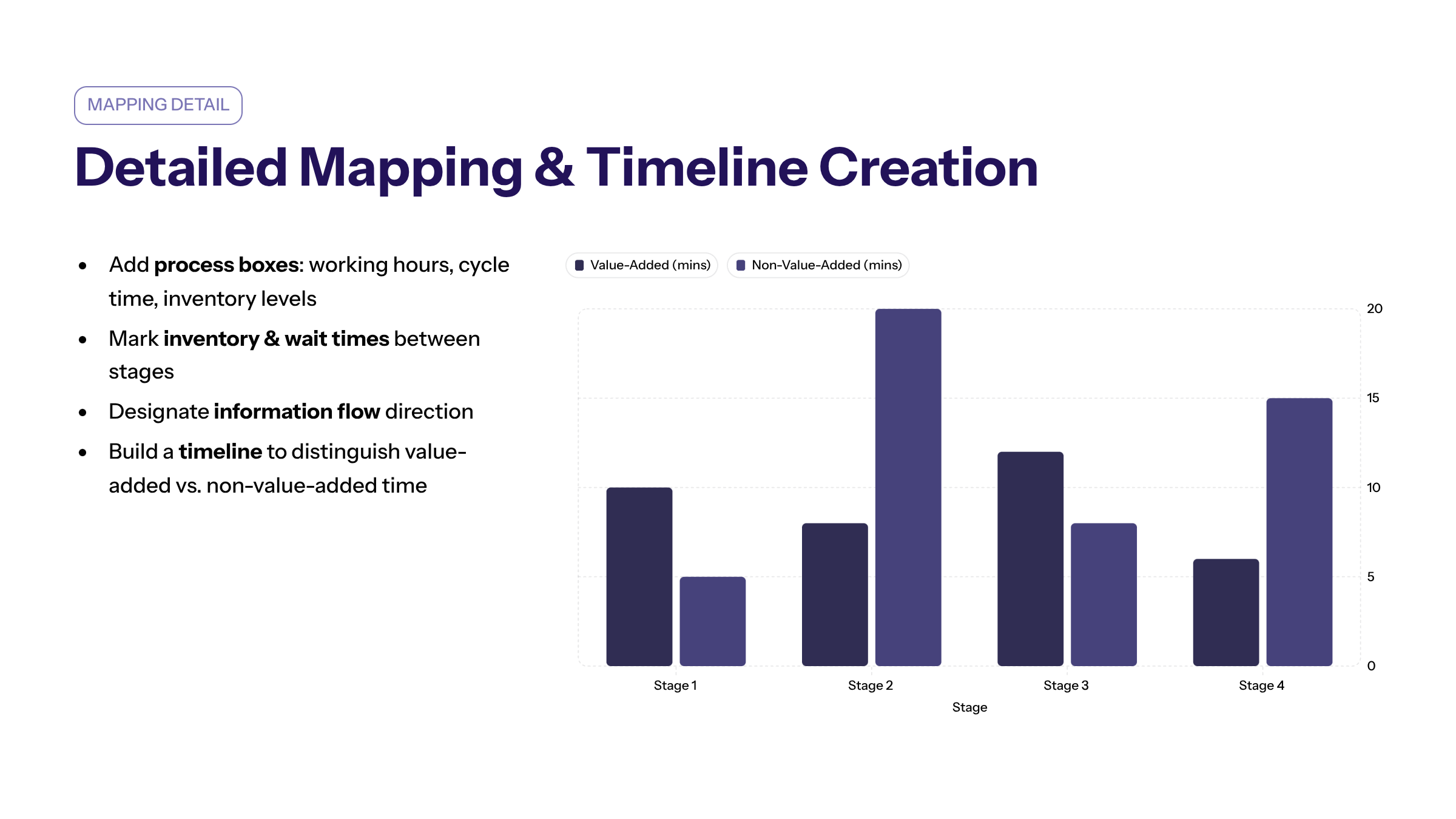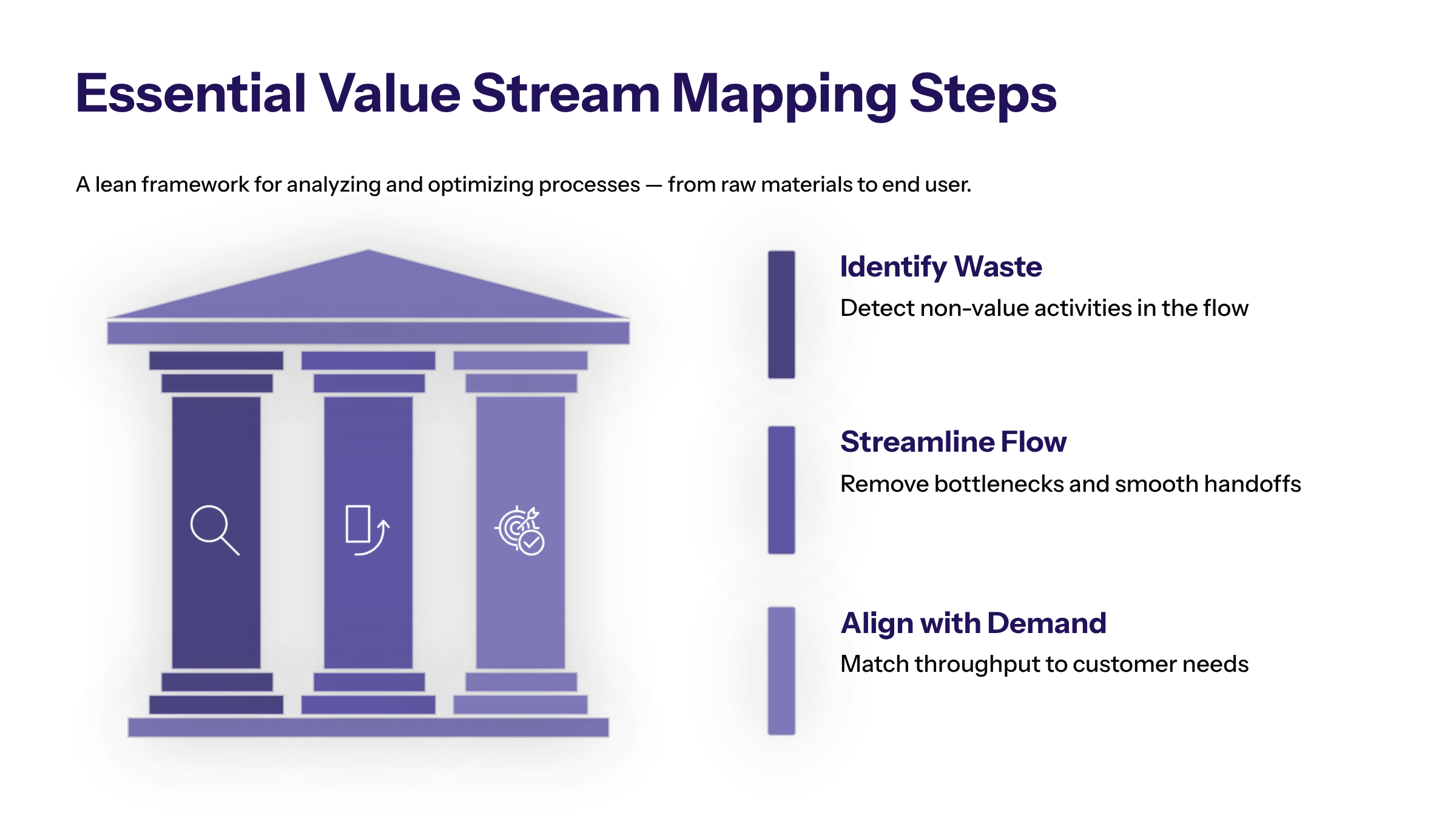 By mapping and analyzing individual process steps, organizations can develop targeted improvement efforts that optimize the entire value stream and achieve the largest reduction in waste and lead time.