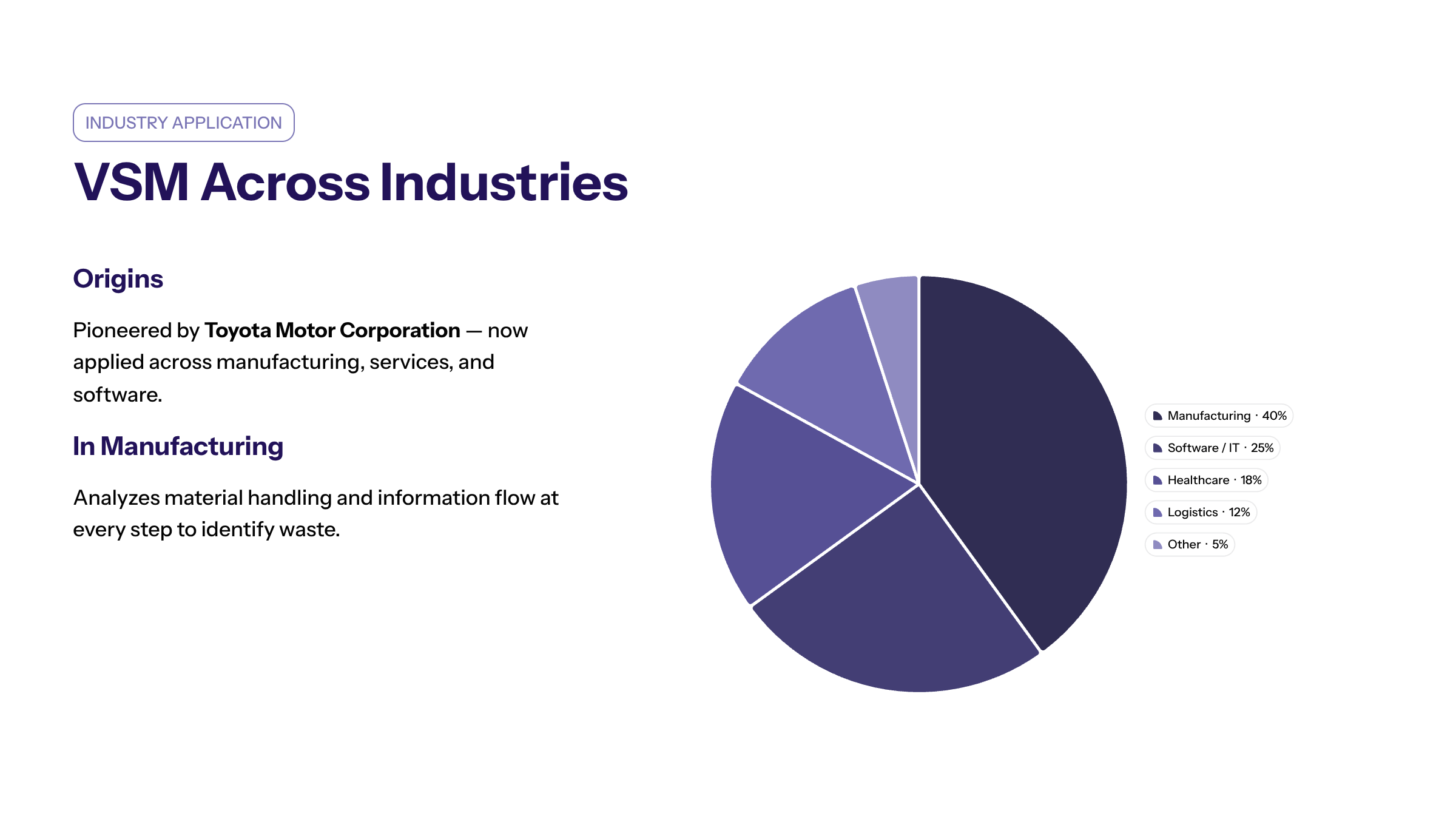 In manufacturing, VSM helps identify waste by analyzing each step of material handling and information flow. In service industries, it facilitates effective and timely services for external customers. In healthcare, VSM ensures patients receive high-quality care efficiently.