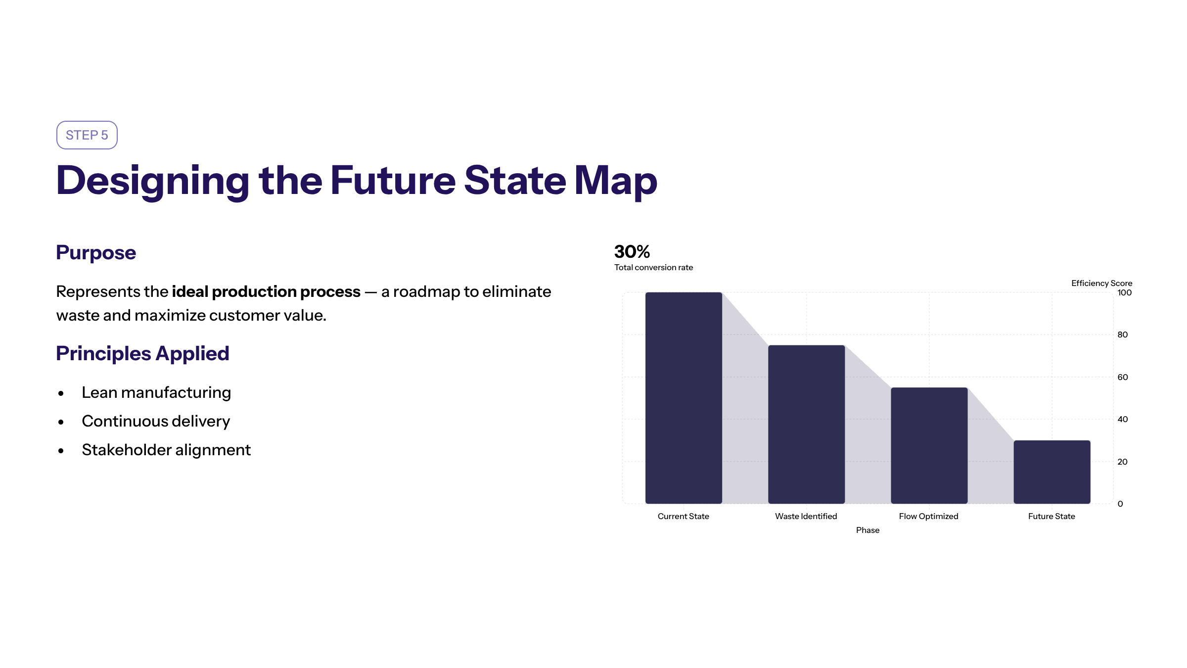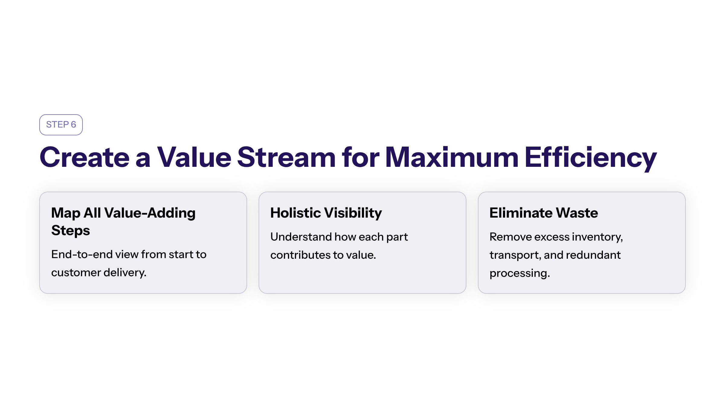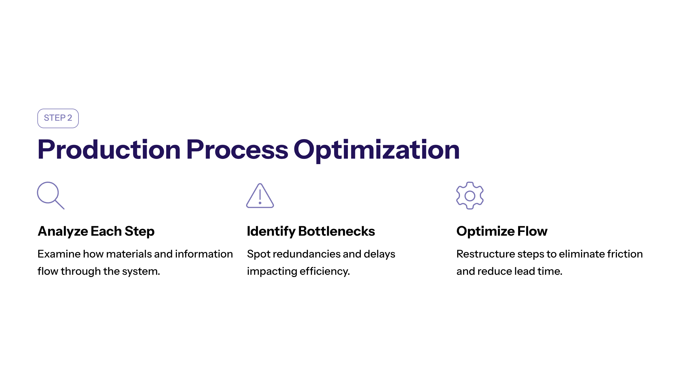 Optimizing the production process ensures that value is added at every stage, reducing wasted time and resources. This step is crucial for creating a streamlined workflow that supports faster delivery and better customer satisfaction.