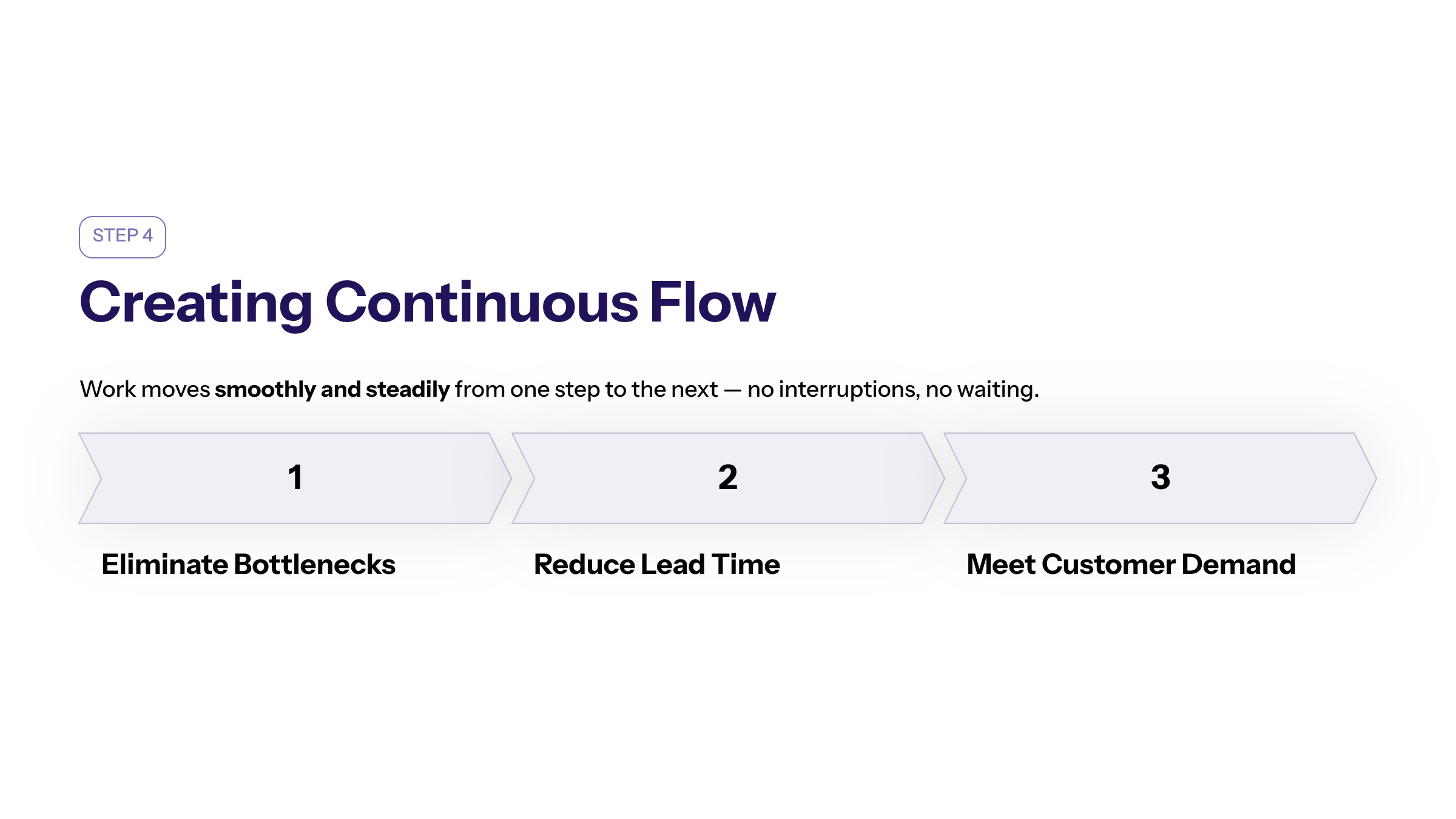 Implementing continuous flow not only improves efficiency but also enhances product quality and customer satisfaction by minimizing delays and defects.