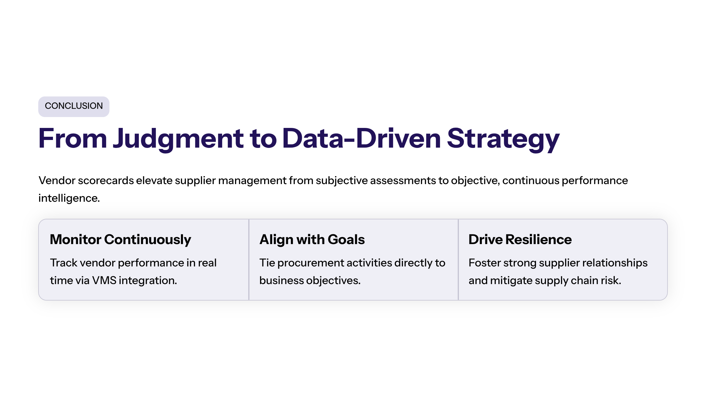 “Integrating vendor scorecards into a vendor management system transforms raw data into strategic insights, enabling procurement teams to act swiftly and collaboratively.”