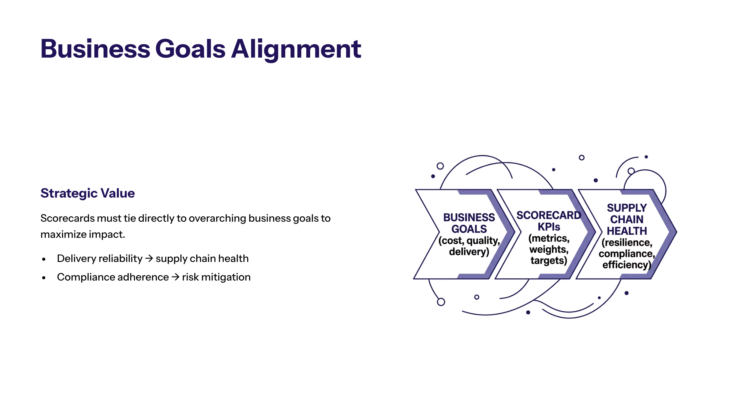 Aligning scorecard metrics with business priorities ensures suppliers are held accountable for performance areas that matter most. This alignment encourages suppliers to focus on process improvements and innovation that support business growth.